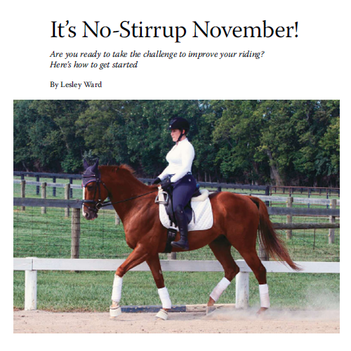 It's No-Stirrup November by Lesley Ward Are you ready to take the challenge to improve your riding? Here’s how to get started. Make